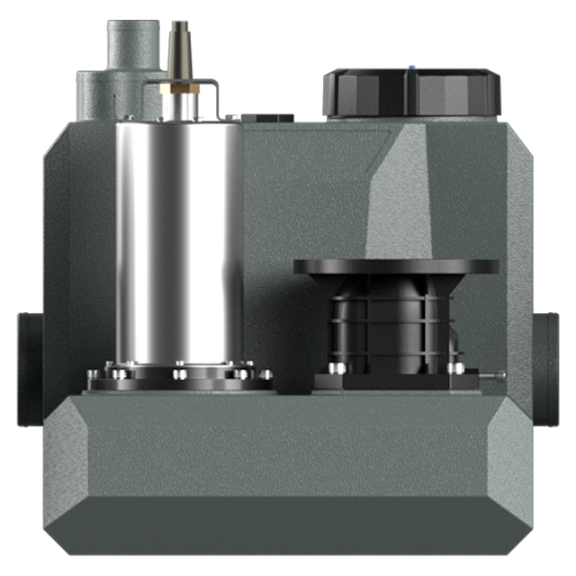 洗衣房干衣房整體距離廚房衛(wèi)生間距離較遠(yuǎn),長距離水平傳輸存在排水不暢隱患,因此采用單獨(dú)一臺洗衣房專用提升泵的解決方案,將洗衣房廢水單獨(dú)排放。