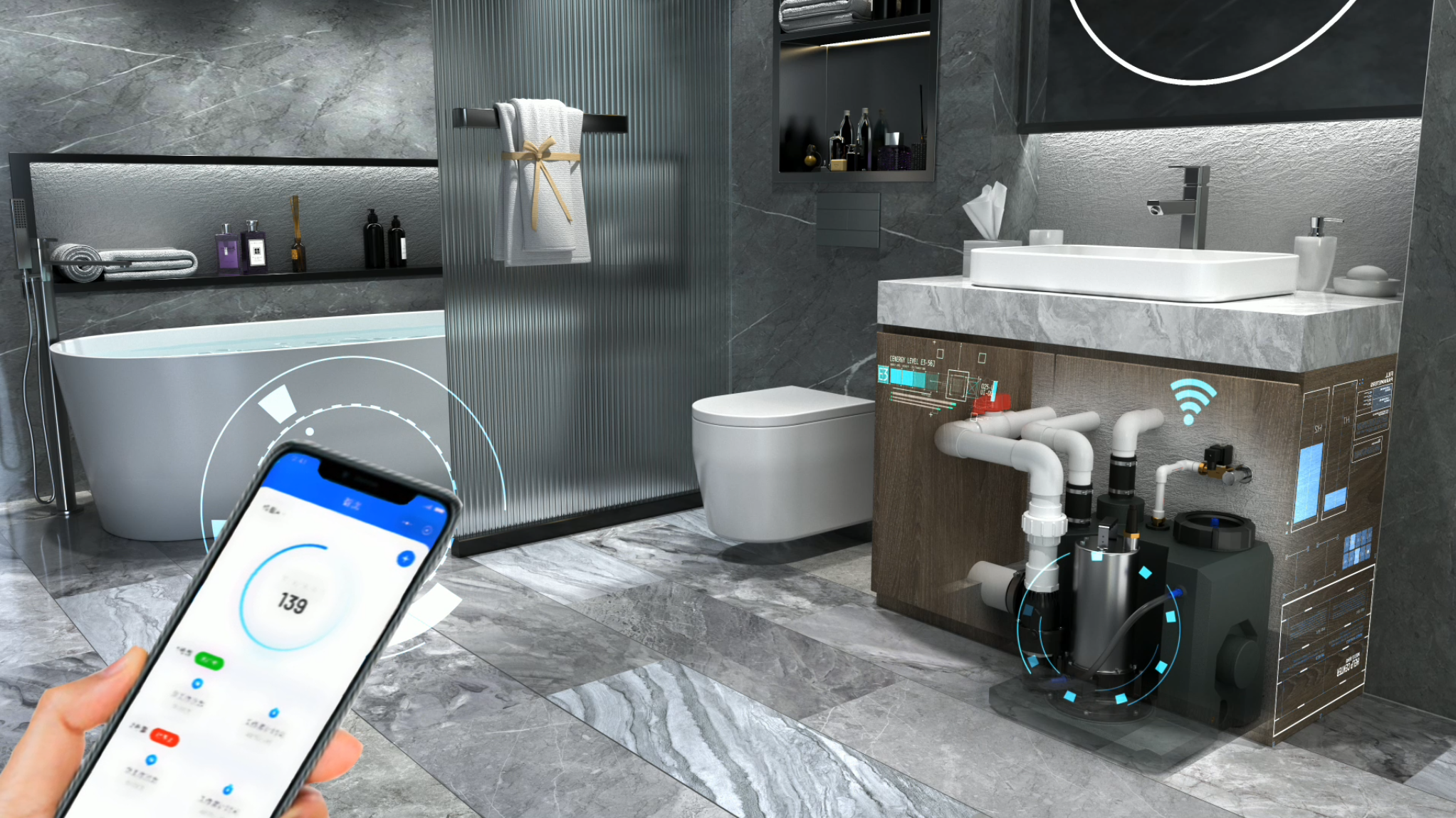 排水點不多,一臺小泵就足夠了,像是750系列,體型小和安裝方便,滿足不同的設計需求,可連接后排式馬桶也可連接側排式馬桶,馬桶,淋浴,洗手池的排水一臺就能一塊兒解決了,并且下置式研磨切割的設計有效避免堵塞問題的發生,反沖洗的設計可以自動維護水箱內部,不用人工維護,排水時會自動啟動清潔,不排水的時候也可以手動/手機控制啟動反沖洗自清潔,氣動的控制也是更加穩定。