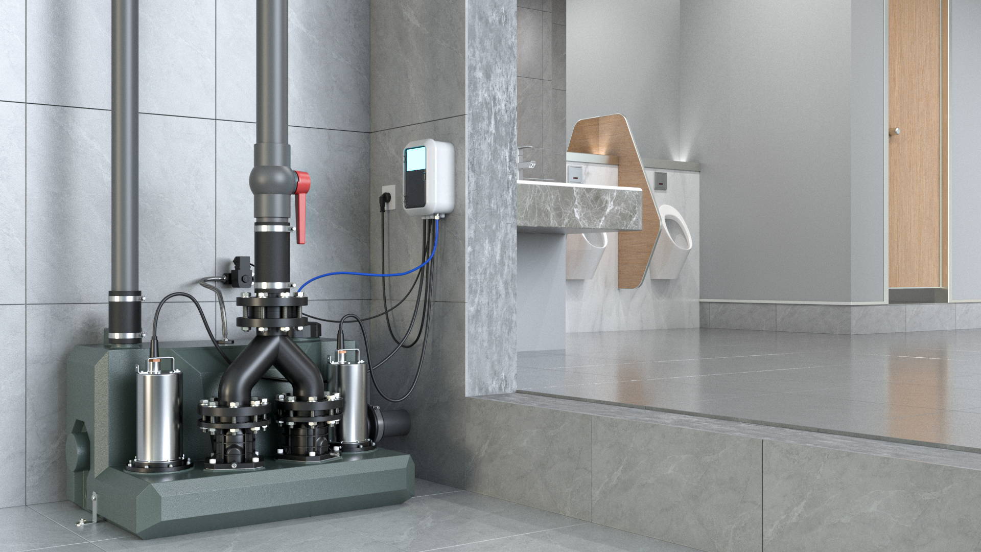 在大型別墅的下躍層或是大中型的地下商業場所,像是地下商超,地下健身房,亦或是地鐵站的衛生間,機場的地下用水空間,我們往往會選擇雙泵系統的污水提升泵站,這樣解決地下室的排水問題會更加穩妥。
