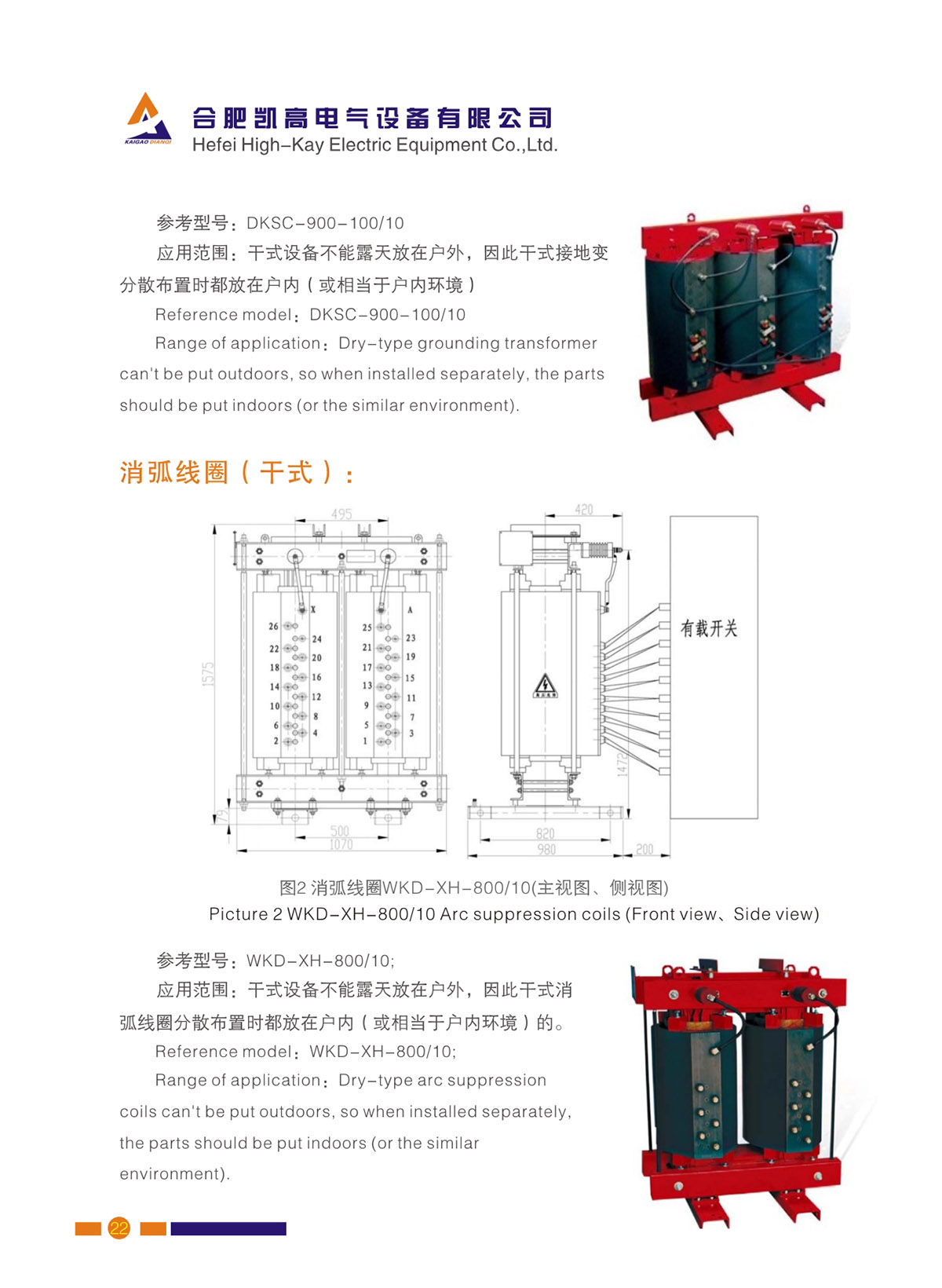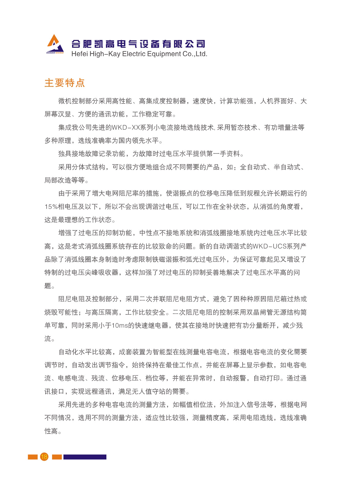 WKD-UCS系列綜合接地選線成套裝置,是將接地變壓器、消弧線圈、真空有載開關、隔離開關、電壓互感器、氧化鋅避雷器、阻尼電阻部分、并聯選線電阻(可選)等一次設備組合成經湊型成套設備,具有成套型強、占地面積小、結構緊湊、運行安全可靠、維護方便等特點。