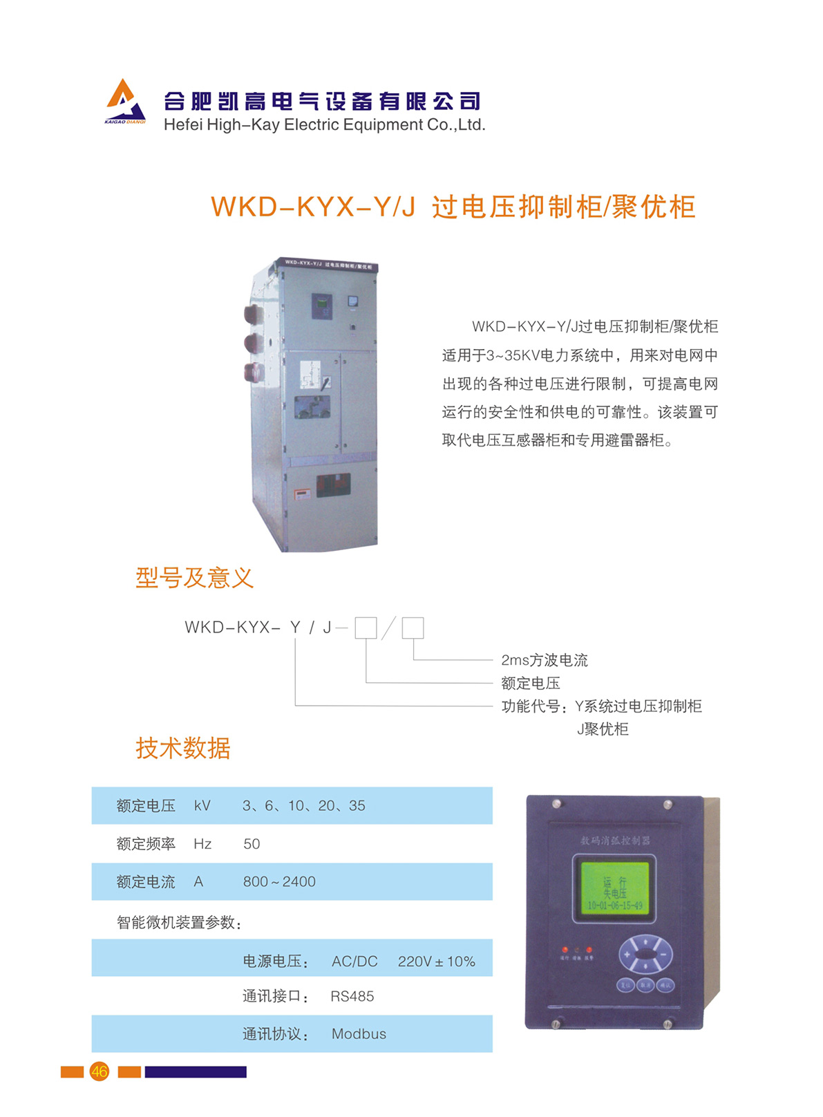 WKD-KYX-Y/J過電壓抑制柜適用于3~35KV電力系統中,用來對電網中出現的各種過電壓進行限制,可提高電網運行的安全性和供電的可靠性。該裝置可取代電壓互感器柜和專用避雷器柜。
