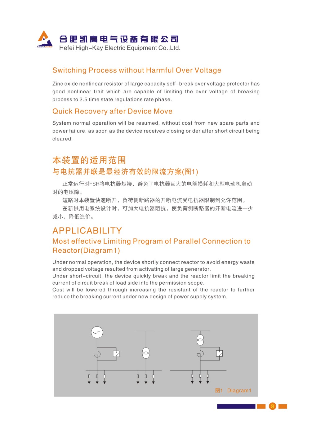 本裝置用于電廠發(fā)電機(jī)出口及廠用高壓側(cè)、鋼鐵、化工、水泥等行業(yè)的預(yù)熱發(fā)電機(jī)出口或替代系統(tǒng)母聯(lián)開關(guān)使用。