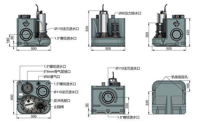 - 入水口:4xφ110,5xφ50