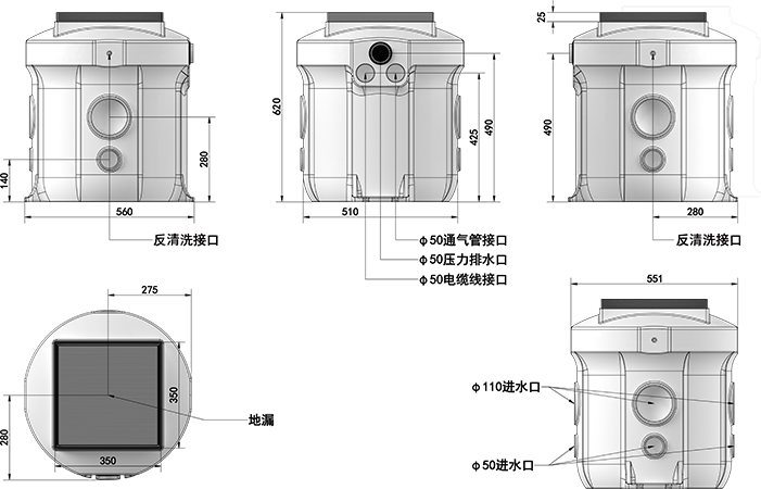 -入水口:3×φ110mm,3×φ50mm、1×頂部地漏入水